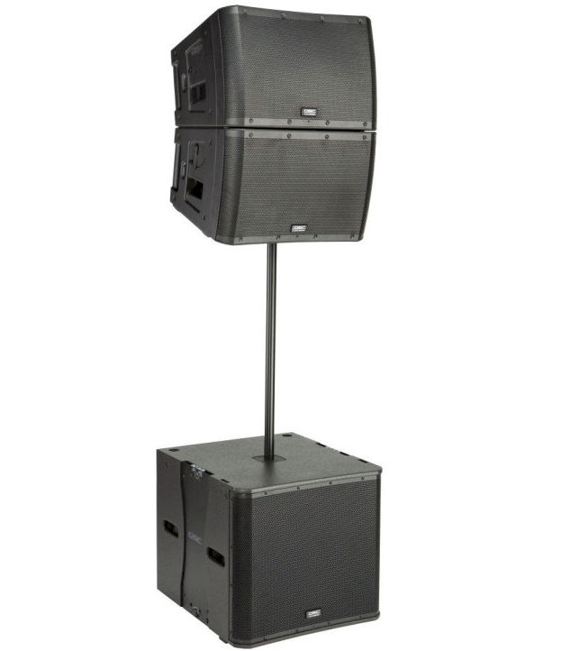 Two QSC KLA12 enclosures can be mounted over the QSC KLA181 using the threaded pole socket. You can also use them without a sub by simply mounting them on speaker stands. QSC KLA12 enclosures also feature the Tilt-Direct 35mm pole socket allowing the loudspeaker to be aimed downward 9° for the best audience coverage.