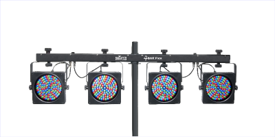 The ultra-portable Chauvet 4BAR Flex gives you a complete 4-light LED fixture that you can easily integrate into the lighting system you already have. Built into a single standalone fixture, the 4BAR Flex features four individual wash lights, each loaded with 108 individual red, green, and blue LEDs. It's like having four fixtures in one! The 4BAR Flex is completely DMX controllable too and can also run beat-synced preset programs in sound-active mode. $100 for One Set (4lights) $175 for Two Sets (8 lights)